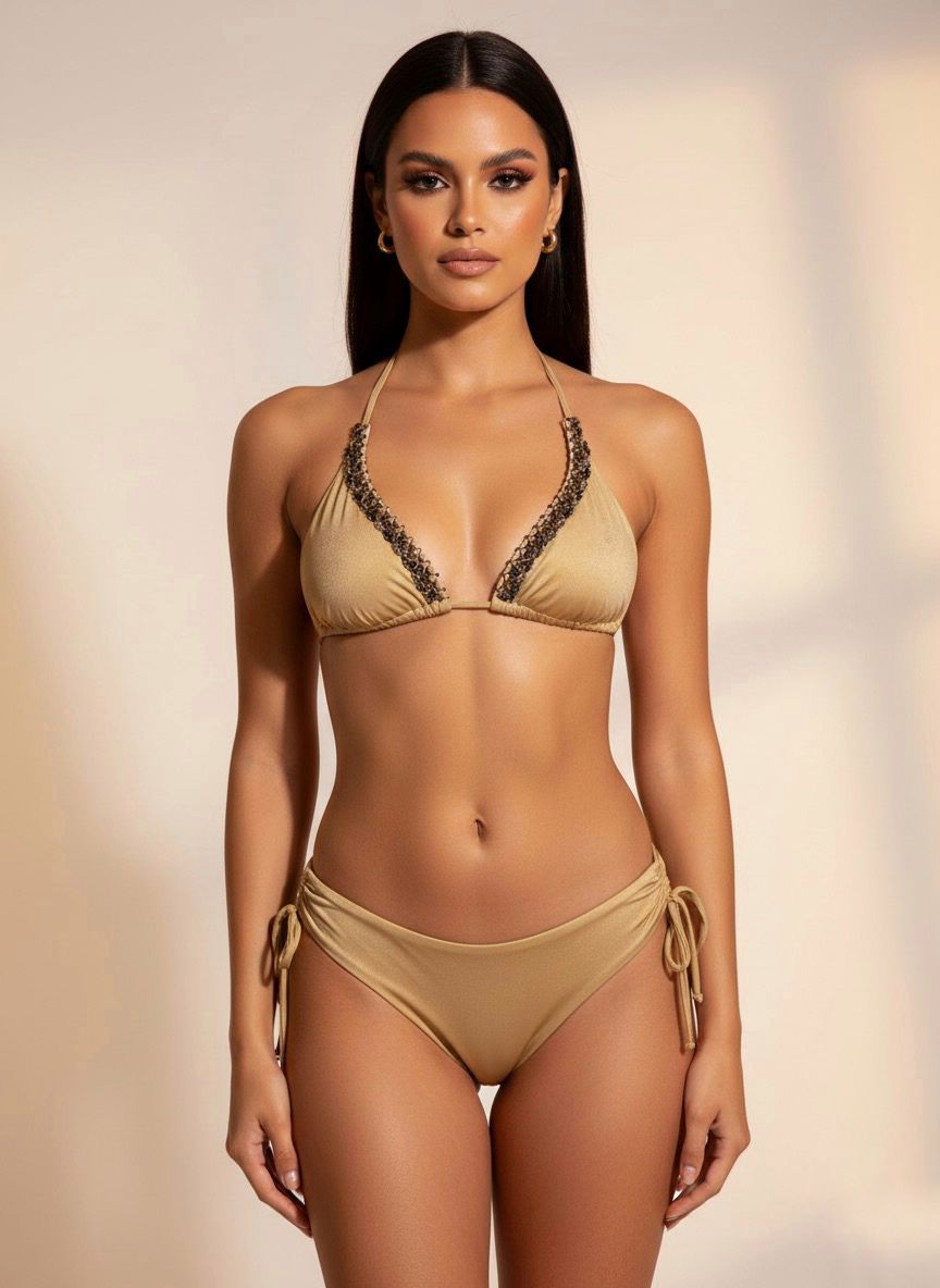 Un bikini pensado para resaltar tu silueta con elegancia. Su diseño con detalles sutiles crea un efecto visual favorecedor, mientras la tela se adapta con suavidad al cuerpo. Una pieza icónica de Sirenia: femenina, moderna y perfecta para esta temporada.